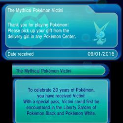 First introduced in Pokémon Diamond & Pearl, Mystery Gift is a feature than enables the player to download Wonder Cards, which in turn allow the player to receive a gift from a delivery man/woman awaiting inside any Pokémon Center. You can however only store a limited amount of Wonder Cards but old ones can be deleted without consequences after receiving their respective gift. Any Wonder Card and thus any event, can only be claimed once per game cartridge, unless you start a new game. Sometimes, an event only becomes available after entering a special code, but the Mystery Gift process doesn’t change much from the one depicted below.